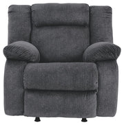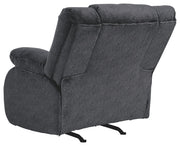 If highly contemporary looks and a heavenly feel sit well with you, rest your eyes on this power rocker recliner. Padded velvet upholstery has a plush high pile that's so soft to the touch. Jumbo contrast stitching adds fashion-forward flair, while radius cut arm frame incorporates cool, curvaceous interest. At your fingertips: one-touch power control with a zero-draw USB plug-in that’s not only convenient but also energy efficient. When it comes to high style at a down-to-earth price, this power recliner really brings it home.