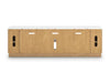 Elegance meets earthy charm in this TV stand. Crafting a contemporary living room? The faux marble top expertly pairs with the reeded base for a trend-right take on day-to-day function. Open shelving and subtly integrated storage cabinets make it easy to store and display media accessories in style.