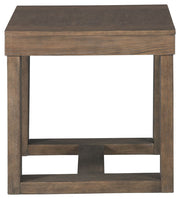 This designer end table makes it hip to be square. Bold, blocky profile is enriched with plank-effect styling and a textured grayish brown finish for a look that’s cool and contemporary and a vibe that’s warm and inviting.