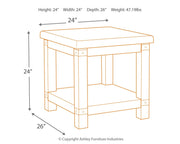 Add a quaint touch of farmhouse style to your living area with this end table. Its beautifully distressed light gray finish enhances the reclaimed wood's natural grain, which delivers a naturally aged feel straight from the countryside. You'll love its generous scale, offering a roomy table top and base shelf that are ideal for displaying accents and more. Large legs, metal accents and the planked effect dress up its country charm.