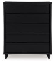 Sophisticated style for the savvy shopper. This chest of drawers prioritizes affordable, on-trend design. Its subtle replicated texture recalls the natural beauty of wood, highlighting the slatted styling. And a matte black finish savvily suits different approaches to modern aesthetics. Mix and match with light and bright hues, or pair with other dark tones for a moody look.