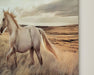 This wall art brings serene beauty to your home. This captivating print on glass captures the grace and majesty of a wild horse galloping through a golden field. The warm, earthy tones and dynamic composition create a sense of freedom and movement. It's a perfect choice to enhance your wall decor with nature-inspired artistry.