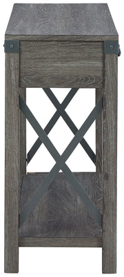 Open the door to modern farmhouse style with this console table. The beautiful woodgrain look and classic crossbuck metal accents are a cool touch, while the lower shelf provides surface space for fashionable home accessories. A pair of smooth-gliding drawers is the answer to the daily, where-are-my-keys question.