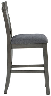 Cool and on-trend. This upholstered barstool sports a two-tone gray look for a contemporary-yet-casual feel. The cushioned foam seat in a gray textural fabric pairs seamlessly with the antiqued gray finish, while the contoured comb-back design adds a dash of geometric flair. With this chic seat, it’s easy to dine in style.