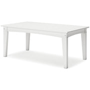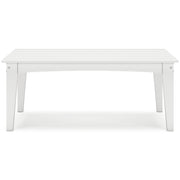 Drift into outdoor entertainment bliss with this coffee table. Dressed in a bright white for a fresh feel, it weathers sunny summer days and cozy winter nights with durable MEGA TUFF™ HDPE material. When it comes to form and function, the table's rain-shedding slatted design simply goes with the flow. Use it to hold outdoor decor, drinks or snacks.