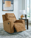 Indulgent comfort meets fashion-forward flair in this rocker recliner. Its luxuriously soft upholstery and captivating color show off your cozy yet smart style. Sleek track arms infuse a modern sensibility, while the gentle rocking motion makes this piece even more inviting. Simple pull tab reclining puts endless relaxation within easy reach.