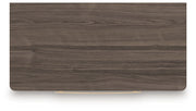 - Two-tone finish (dark brown finish over replicated walnut grain; matte white finish)