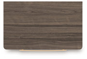 - Two-tone finish (dark brown finish over replicated walnut grain; matte white finish)