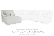 This left-arm facing press-back chaise is made with polyester upholstery. Pairs with other items in the series to make a sectional.