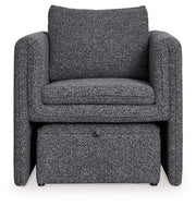 Create a stylish retreat with this space-saving accent chair and ottoman set. Its sophisticated charcoal and black upholstery adds modern elegance to small apartments, living rooms, dorms and more. Curl up and relax in the cozy embrace of the chair— and when you need to put your feet up, simply pull out the ottoman that tucks neatly underneath. The best part? This set arrives fully assembled.