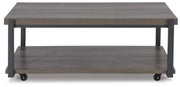A cohesive, casual contemporary ensemble. This table set is equal parts sleek form and routine practicality. If you're hosting guests or need space to stretch out in a recliner, rolling casters on the coffee table clear up extra floor space in a snap. Each table is outfitted with a lower shelf for chic storage and displaying decor.