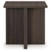 With its geometric allure, this table set serves as a striking focal point for casual or refined settings. Its clean lines and rich dark brown wood-grain finish create a warm and inviting atmosphere of natural beauty. Seamlessly blending with unpretentious lifestyle interiors, these tables offer distinctiveness and functionality.